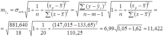 5. Полученные оценки уравнения регрессии позволяют использовать его для прогноза. Если прогнозное значение фактора составит