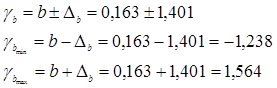 Если в границы доверительного интервала попадает ноль, т.е. нижняя граница отрицательна, а верхняя положительна, то оцениваемый параметр признается нулевым, т.к. он не может одновременно принимать отрицательное и положительное значение.