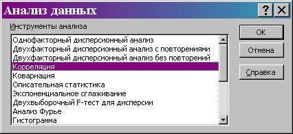 4) в появившемся диалоговом окне «Анализ данных» (рис. 8) выбрать «Корреляция;