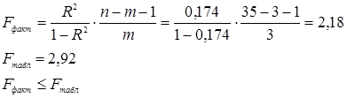 Полученное значение F-критерия превышает табличное, следовательно параметры уравнения и показателя тесноты статистически незначимы.