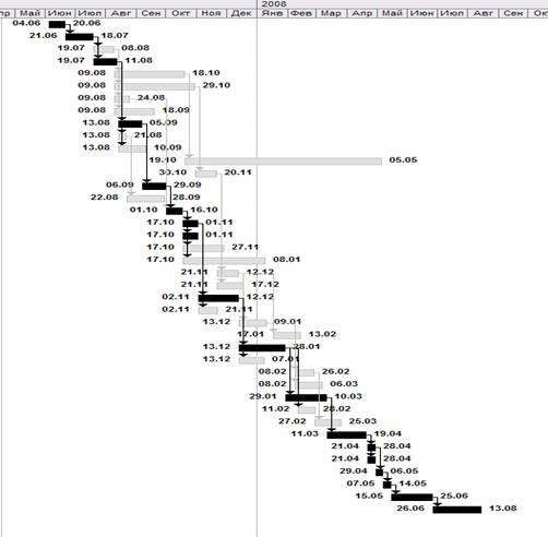 В результате проделанной работы был изучен и произведен анализ загрузки производственных мощностей, был построен и рассчитан сетевой график, а также разработан график Гантта. В процессе выполнения вышеуказанных работ были изучены основы имитационного моделирования инвестиционных проектов посредством применения приложения MSOfficeProject. Получены навыки в оформлении проектной документации с помощью ПК.