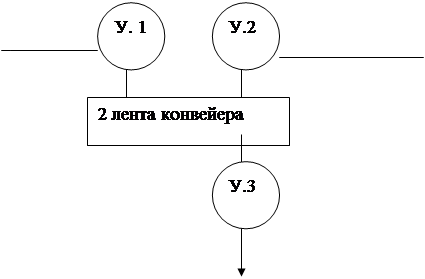 В данном примере имеется две ленты и три обслуживающихся устройства (У.1, У.2, У.3). На 1й и 2й ленте обслуживаются два обслуживающихся устройства У.1 и У.2.