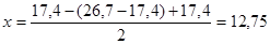 Найдем центры интервалов. Значения центров интервалов равны половине суммы значений границ интервалов.