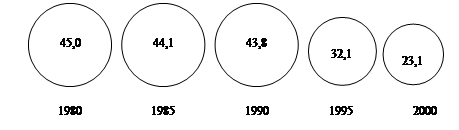 | 1995 | 32,1 | 5,6 | 3,0 | 1,8 |