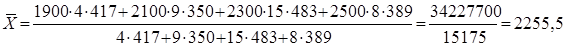 Решение: Размах вариации последующего за первым открытым снизу интервалом и предыдущего последнему интервалу, открытому сверху - равно 200. Поэтому нижняя граница первого интервала равна 1800 кг, а верхняя граница последнего – 2600 кг.