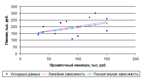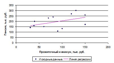 | Пенсия, тыс. руб., у | 131 | 110 | 170 | 141 | 150 | 160 | 200 | 230 | 240 | 260 | 270 | 300 |