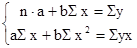 Для расчета параметров a и b уравнения линейной регрессии у = а + bx решим систему нормальных уравнений относительно а и b: