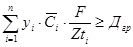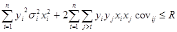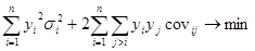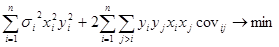 ΔF задает минимально необходимый прирост инвестиционных ресурсов, определяемый инвестором при реализации активов портфеля в момент времени t=T. Значения covij вычисляются как попарные ковариации актива i и актива j (i=1,…,n; j=1,…n; i≠j), вычисляемые на основе вероятностного распределения доходности этих активов.