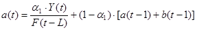 a ( t ) , b ( t ) и F ( t ) - коэффициенты модели; они адаптируются, уточняются по мере перехода от членов ряда с номером t -1 к t ;