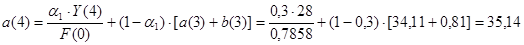 Из формул 1 - 4 видно, что для расчета а (1) и b (1) необходимо оценить значения этих коэффициентов для предыдущего период времени (т.е. для t =1-1=0). Значения а (0) и b (0) имеют смысл этих же коэффициентов для четвертого квартала года, предшествующего первому году, для которого имеются данные в табл. 1.