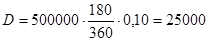 3.3. Через 180 дней предприятие должно получить по векселю 500 000 руб. Банк приобрел этот вексель с дисконтом. Банк учел вексель по учетной ставке 10% годовых (год равен 360 дням). Определить полученную предприятием сумму и дисконт.