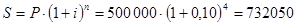 3.4. В кредитном договоре на сумму 500 000 руб. и сроком на 4 года зафиксирована ставка сложных процентов, равная 10% годовых. Определите наращенную сумму.