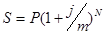 Начисление процентов два раза в год, т.е. m=2. Всего имеется N = 4·2 =8 периодов начислений. По формуле начислений процентов по номинальной ставке: