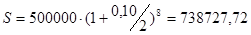 3.5. Ссуда, размером 500 000 руб. предоставлена на 4 года. Проценты сложные, ставка – 10% годовых. Проценты начисляются 2 раза в год. Вычислить наращенную сумму.