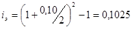 3.6. Вычислить эффективную ставку процента, если банк начисляет проценты 2 раза в год, исходя из номинальной ставки 10% годовых.