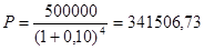 3.8. Через 4 года предприятию будет выплачена сумма 500 000 руб. Определить ее современную стоимость при условии, что применяется сложная процентная ставка 10% годовых.
