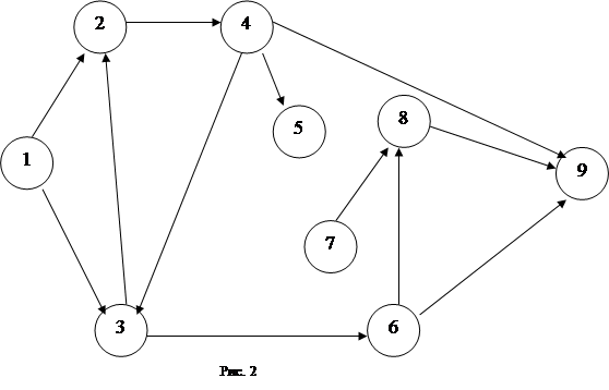 1. События правильно пронумерованы, т. е. для каждой работы (i, j) i <j (см. на рис. 2 работы (4,3) и (3,2)). При невыполнении этого требования необходимо использовать алгоритм пере нумерации событий, который заключается в следующем: