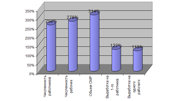 В частности, такие опорные для предприятия показатели как среднесписочная численность, объем выполненных работ, их себестоимость и фонд оплаты труда увеличились на 258%, 314%, 316% и 307% соответственно.