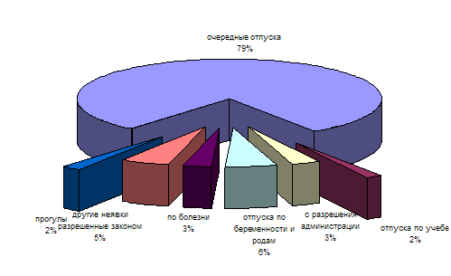 Хотя потери объемов работ в связи с неявками на работу персонала предприятия увеличились, нужно принять во внимание изменение структуры неявочного времени.