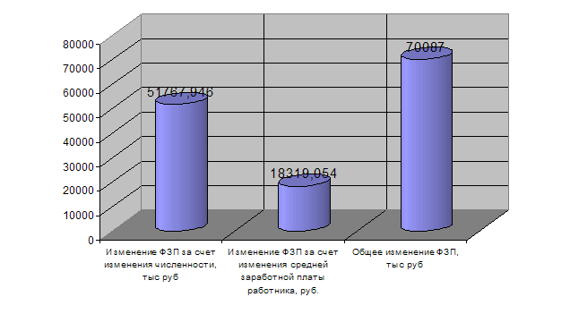 Изменение фонда оплаты труда на предприятии произошло в сторону его увеличения. Причем, как это было выявлено при более глубоком анализе, увеличение это произошло по всем факторам, которые могут оказывать влияние на этот показатель. Так, за счет увеличения численности на предприятии фонд заработной платы вырос на 51767,95 тыс. руб. Также положительное влияние на рост ФЗП оказало увеличение заработной платы, приходящейся на одного работника, составившее в свою очередь 18319,05 тыс. руб.