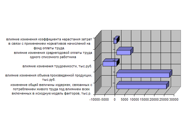 Издержки, связанные с потреблением живого труда на предприятии выросли на 25091,5 тыс. руб., но в основном за счет увеличения объема продукции (26633,06 тыс. руб.) а также изменения оплаты труда одного списочного работника (6961,24 тыс. руб.). Снижение трудоемкости работ (6961 тыс. руб.) и влияние изменения коэффициента нарастания затрат в связи с применением нормативов начислений на фонд оплаты труда (1541,6 тыс. руб.) занизили издержки, связанные с потреблением живого труда на предприятии.
