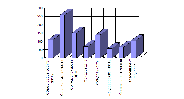Как видно на диаграмме (рис. 8.1), темпы роста показателей по фактическим данным опережают темпы роста показателей по прогнозным данным.