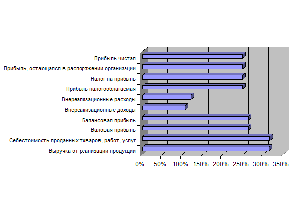 Рис. 8.1 Динамика изменения темпов роста основных показателей организации