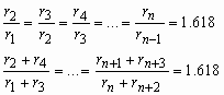 2.При делении каждого числа на следующее за ним через одно получаем число 0.382; наоборот – соответственно 2.618.