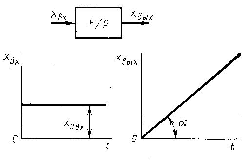 * Звенос придаточной функцией можно представить в виде последовательно соединённых усилительного звена с передаточной функцией W ( p ) = k и собственно интегрирующего звена. Однако т.к. усилительное звено изменяет только масштаб выходной величины, то для уменьшения числа звеньев при представлении АСР элементарными динамическими звеньями звено с передаточной функцией принимается за элементарное.
