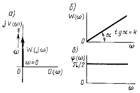 б) при всех частотах выходные колебания отстают по фазе от входных на угол 90° (рис.6в)