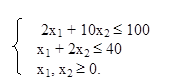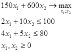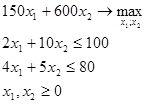 ), максимальное решение целевой функции 20x1