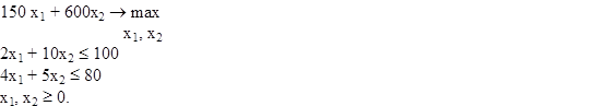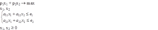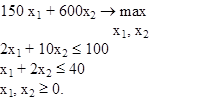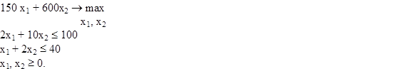 2) Записать в общем виде задачу линейного программирования на максимум в стандартной форме, если размерность задачи: две переменных, одно ограничение.