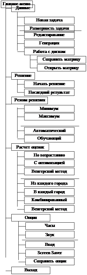 Рассчитывается цена маршрута по зафиксированным для данной вершины городам. Затем формируется матрица из элементов незанятых строк и столбцов размерностью M´M, где M = N ‑ количество пройденных городов. Эта матрица передается венгерскому алгоритму, который описан ниже (Программная реализация - VENGRSOL. CENTRAL_CONTROL):