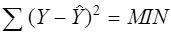 Определение теоретических (расчетных) уровней Y производится на основе так называемой адекватной математической функции ,которая наилучшим образом отображает основную тенденцию ряда динамики.Подбор адекватной функции осуществляется методом наименьших квадратов - минимальностью отклонений суммы квадратов между теоретическими Y и эмпирическими Y уровнями :