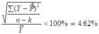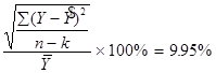 Полученный тренд изображен на графике (1) .Однако видно,что отклонение фактических уровней от расчетных довольно велико.Об этом же говорит довольно большое ср.квадратическое отклонение (6.1) .Рассчитаем ошибку тренда в процентах по формуле :