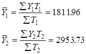 Применительно к анализируемым данным для определения алгоритмов (4.1) и (4.2) составляется матрица расчетных показателей (таб. 2)