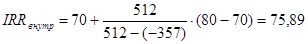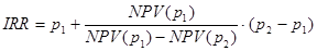 Точка, в которой кривая пересекает ось Х дает искомое значение IRR . Для точного определения этого значения можно воспользоваться формулой:
