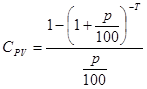 - удельный коэффициент для расчета суммарного значения современной стоимости денежных средств.