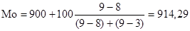 Полученное значение моды свидетельствует о том, что в рассматриваемой совокупности наиболее типичной является заработная плата 914,29 грн., что выше ранее рассчитанной средней зарплаты (870 грн).