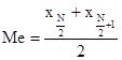 В дискретном ряду, состоящем из четного числа единиц совокупности, медиана определяется как средняя из вариант, имеющих номера