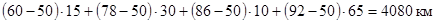 Вариант 1. Если бензоколонку поставить в середине шоссе, т.е. на 50-ом километре (центр диапазона изменения признака), то пробеги с учетом числа ездок составят: