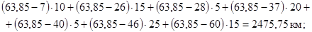 Вариант 2. Если бензоколонку поставить на среднем участке шоссе, определенном по формуле средней арифметической с учетом числа ездок: