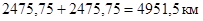 в) общий пробег в оба направления, равный