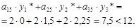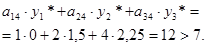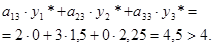 Видно, что ресурсы II и III используются в оптимальном плане полностью и являются дефицитными, т.е. сдерживающими рост целевой функции. Они имеют отличные от нуля оценки y 2 * =1,5 и y 3 * =2,25.