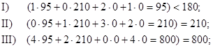 4. Проанализируем использование ресурсов в оптимальном плане. Для этого подставим в ограничения исходной задачи значения переменных оптимального плана Х *=(95; 210; 0; 0) и проверим выполнение неравенств: