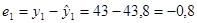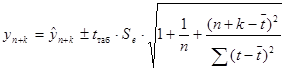 - стандартное отклонение ряда остатков (определено с помощью встроенной функции «СТАНДОТКЛОН
