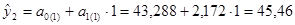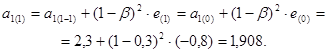 5) По модели со скорректированными параметрами a 0( t ) и a 1( t ) находим прогноз на следующий момент времени: