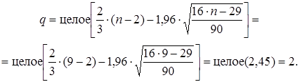 Критическое число поворотных точек для a=0,05 и n =9 определяется по формуле