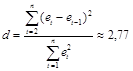 Проверим независимость остатков с помощью критерияДарбина–Уотсона (отсутствие автокорреляции).Для расчетаd ‑статистики используется выражение, составленное из встроенных функций EXCEL: