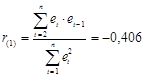 то нет достаточных оснований сделать тот или иной вывод о выполнении свойства независимости. Проверим независимость остатков по коэффициенту автокорреляции первого порядка, который равен (см. прил. 4 ):